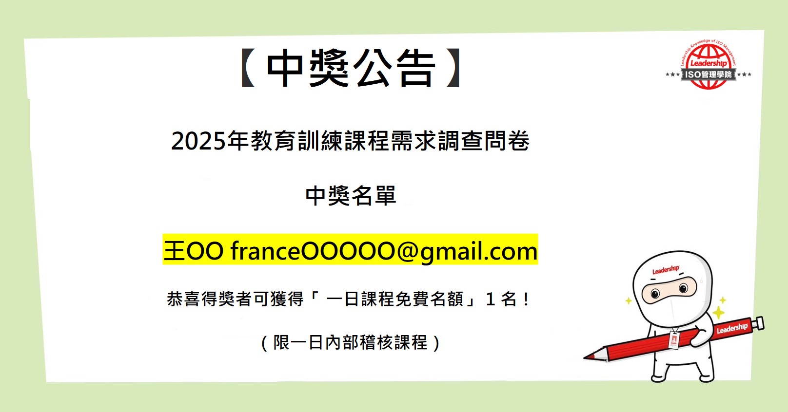 【中獎公告】2025年教育訓練課程需求調查問卷